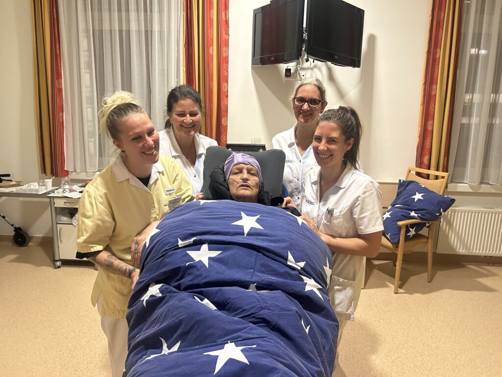 Binnen weniger Stunden waren unsere ehrenamtlichen Wunscherfüller einsatzbereit. Gemeinsam holten sie Frau Milumirka behutsam von der Palliativstation ab. Die schwere Krankheit hat deutliche Spuren hinterlassen – und doch lag ein Lächeln auf ihrem Gesicht. Die Freude darüber, dass ihr Wunsch in Erfüllung gehen würde, war spürbar.